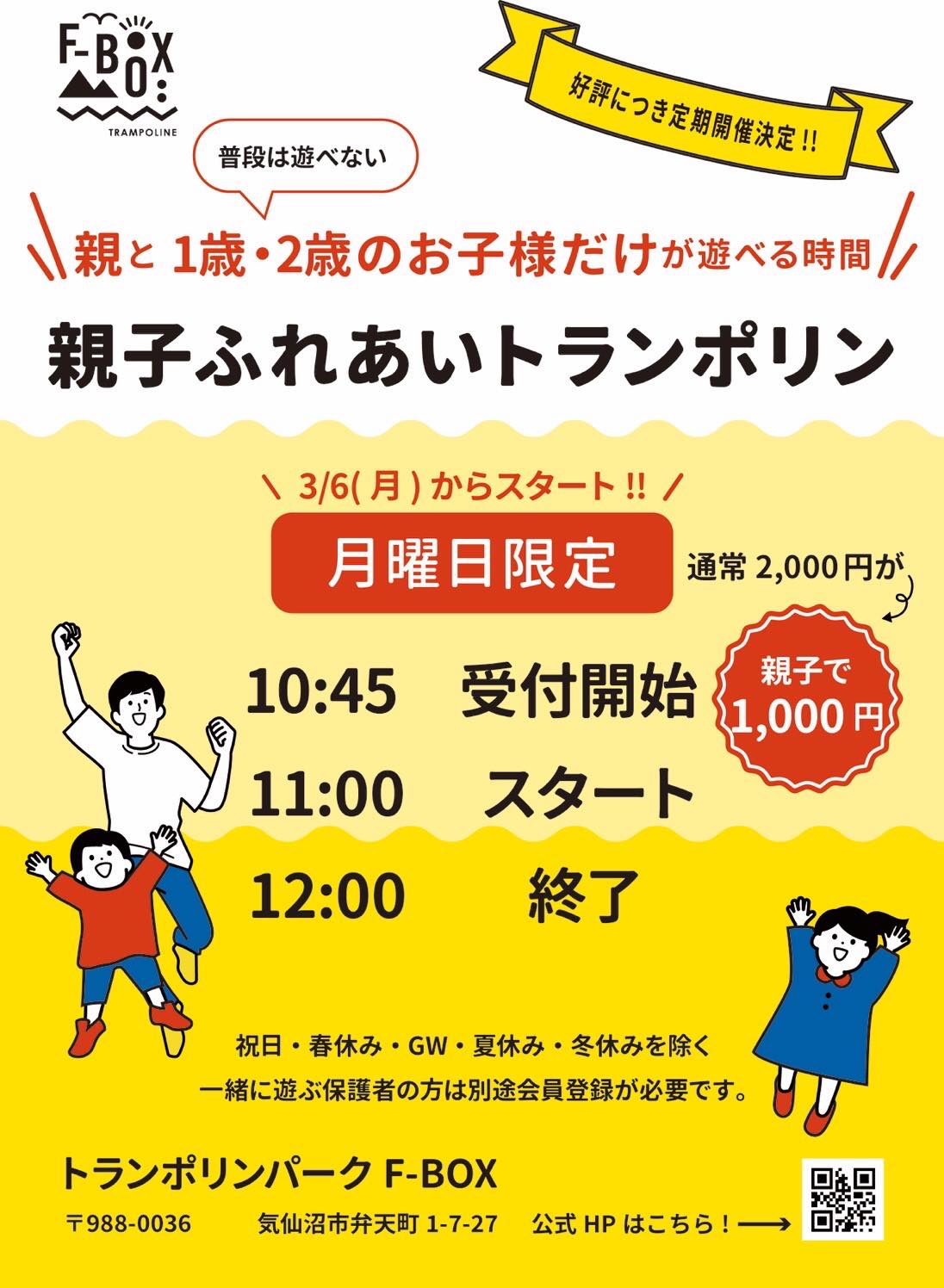 そんなママさん達の声にお応えして、不定期イベントとして開催していた「1.2歳の子だけが遊べる親子ふれあいトランポリン」をレギュラー化いたします。