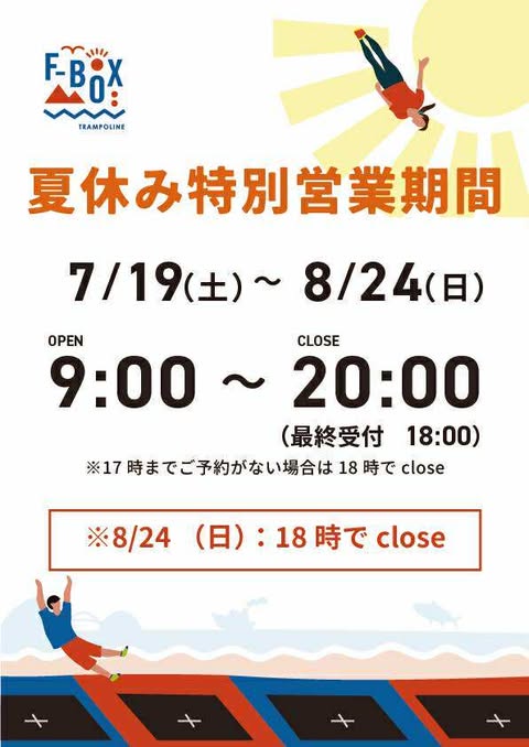 7/19~8/24は夏休み特別営業期間として休まず営業いたします!